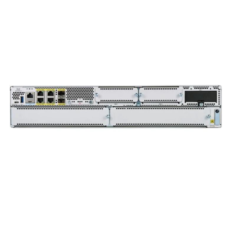 C8300 2RU avec 1G WAN (2 emplacements SM et 2 NIM et 6 ports Ethernet 1 Gigabit) |